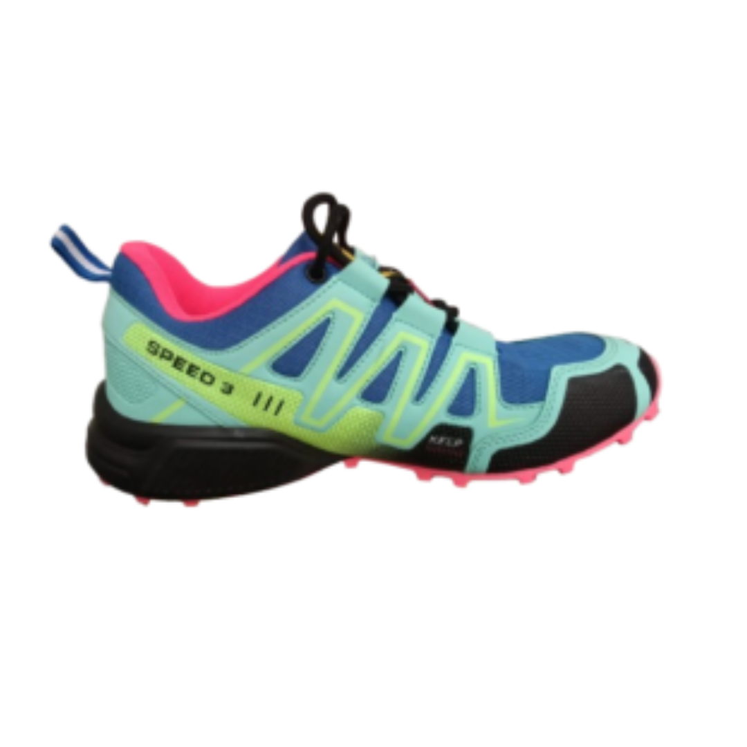Préparez-vous à conquérir tous les terrains avec ces chaussures de trail haute performance. Alliant un design audacieux (Bleu, Rose, Vert menthe) et une technologie de traction supérieure, la « Speed 3 » est conçue pour les coureurs qui ne veulent pas passer inaperçus. Sa semelle à crampons roses offre une adhérence exceptionnelle sur les sentiers techniques.