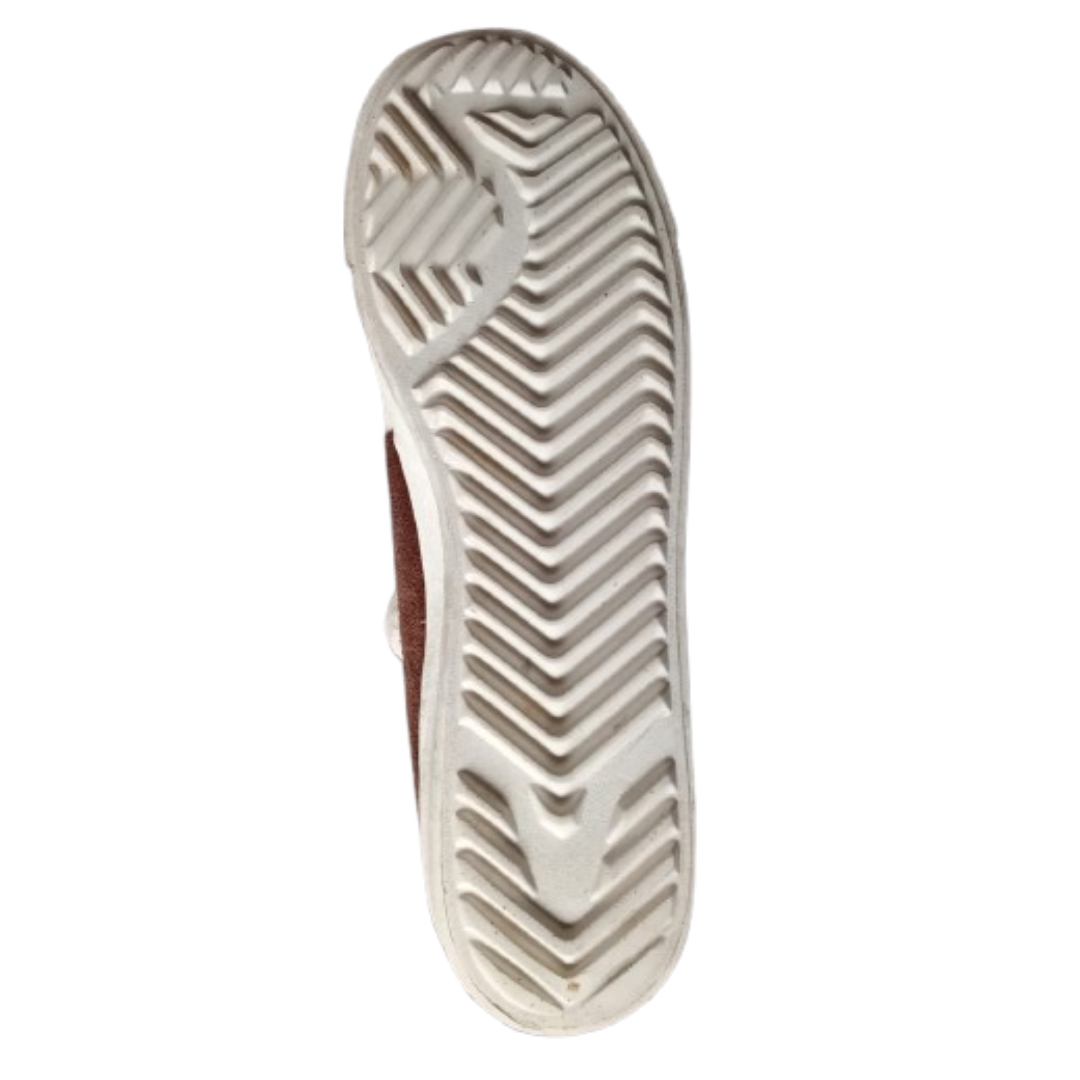 Semelle Crantée : La semelle extérieure en caoutchouc blanc présente un motif à chevrons accentué, garantissant une excellente adhérence et une allure affirmée.