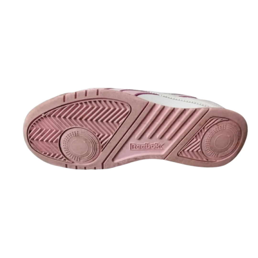 Sa tige en cuir synthétique blanc est relevée par des bandes latérales aux nuances de rose et de violet, offrant un contraste élégant et une touche de peps à votre style.